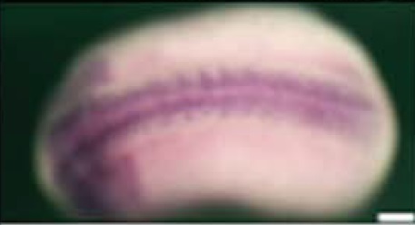 Larger Image hcn4 ( hyperpolarization activated cyclic nucleotide gated potassium channel 4 ) gene expression in Xenopus laevis embryo, assayed via in situ hybridization, NF stage 21, dorsal view, anterior left. This image is extracted from figure published in: Pitcairn E et al. (2017), Image published in: Pitcairn E et al. (2017) © 2017 The Author(s). Creative Commons Attribution-NonCommercial-NoDerivatives license