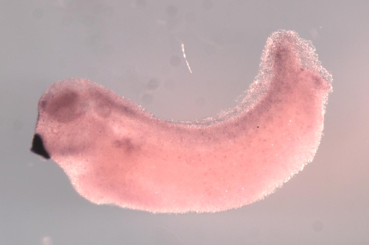 Larger Image pdxdc1 (pyridoxal-dependent decarboxylase domain containing 1) gene expression in X. laevis embryo, assayed via in situ hybridization, NF stage 30 & 31, lateral view, anterior left, dorsal up. Copyright © Perron Lab