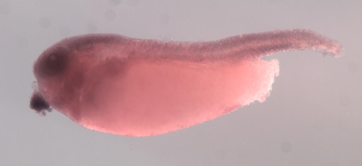 Larger Image kif21b (kinesin family member 21B L homeolog) gene expression in X. laevis embryo, assayed via in situ hybridization, NF stage 35 & 36, lateral view, anterior left, dorsal up. Copyright © Perron Lab