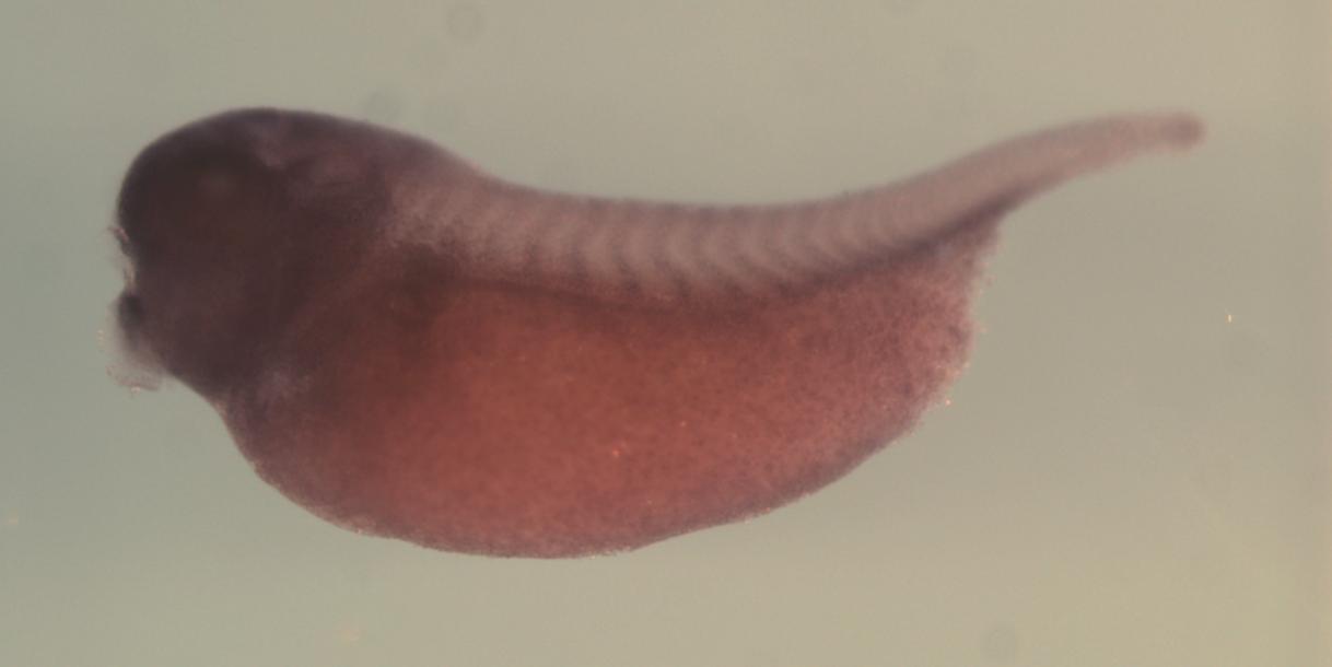 Larger Image phf14 (PHD finger protein 14) gene expression in X. laevis embryo, assayed via in situ hybridization, NF stage 35 & 36, lateral view, anterior left, dorsal up. Copyright © Perron Lab