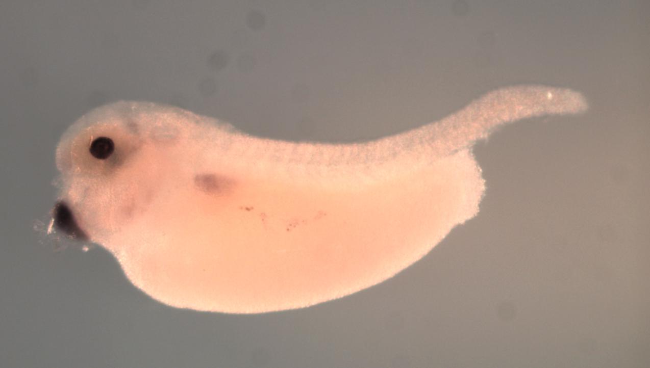 Larger Image endoul (endonuclease, poly(U) specific like) gene expression in X. laevis embryo, assayed via in situ hybridization, NF stage 35 & 36, lateral view, anterior left, dorsal up. Copyright © Perron Lab