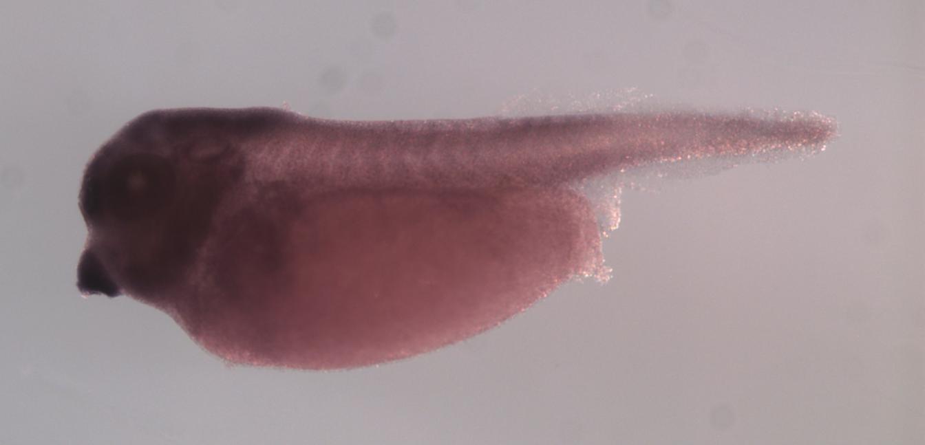 Larger Image pcyox1l (prenylcysteine oxidase 1 like) gene expression in X. laevis embryo, assayed via in situ hybridization, NF stage 35 & 36, lateral view, anterior left, dorsal up. Copyright © Perron Lab