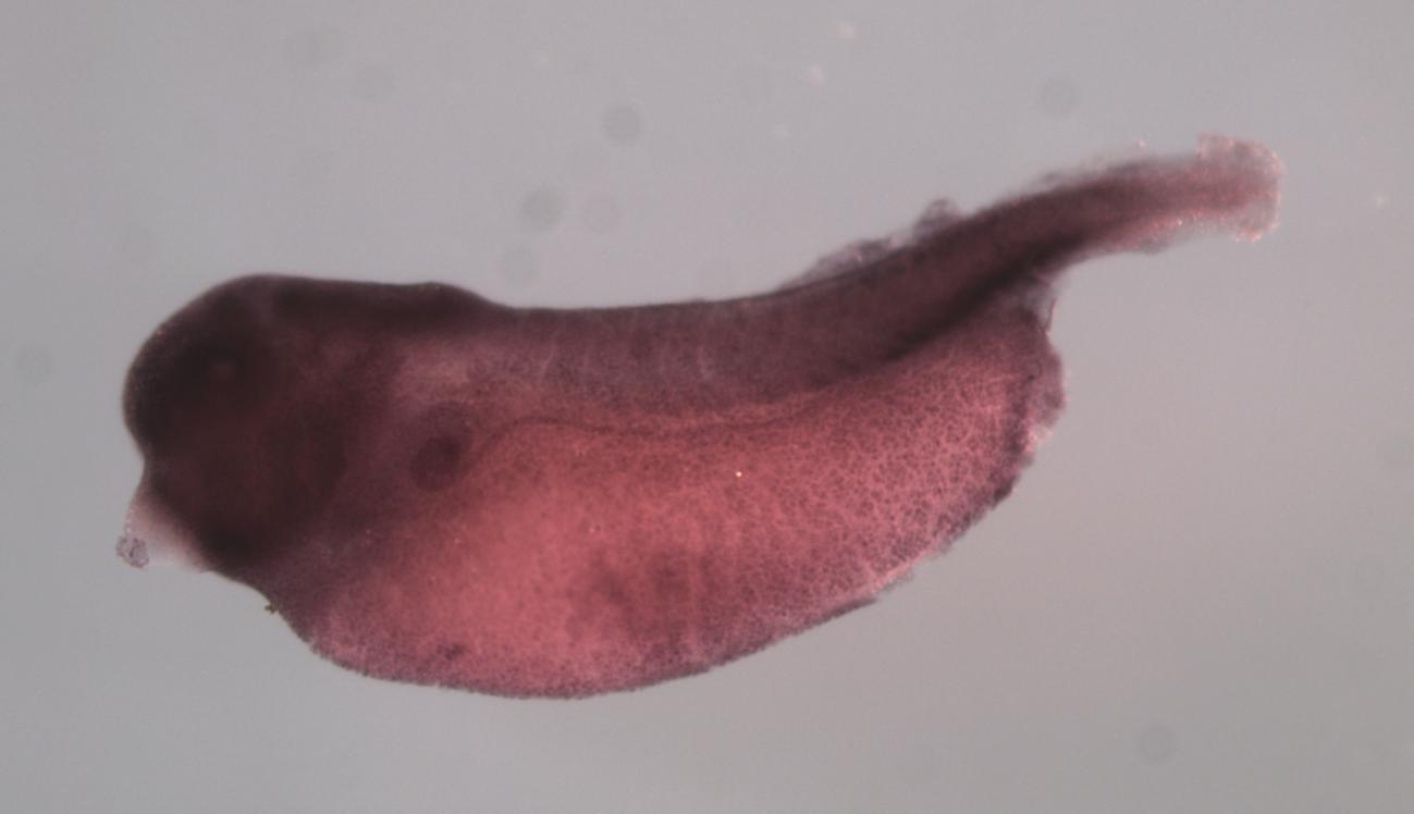 nav3 (neuron navigator 3) gene expression in X. laevis embryo, assayed via in situ hybridization, NF stage 35 & 36, lateral view, anterior left, dorsal up.