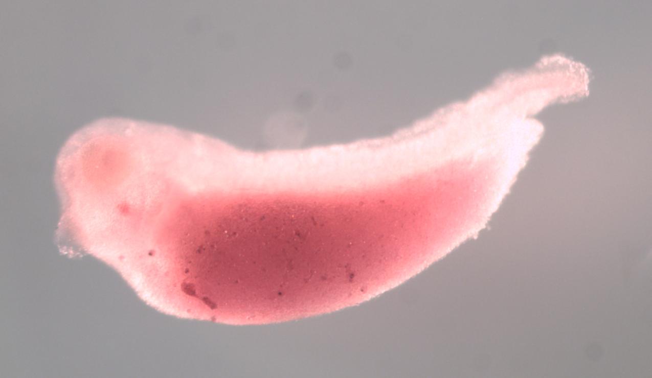 Larger Image klhl17 (kelch like family member 17 L homeolog) gene expression in X. laevis embryo, assayed via in situ hybridization, NF stage 33 & 34, lateral view, anterior left, dorsal up. Copyright © Perron Lab