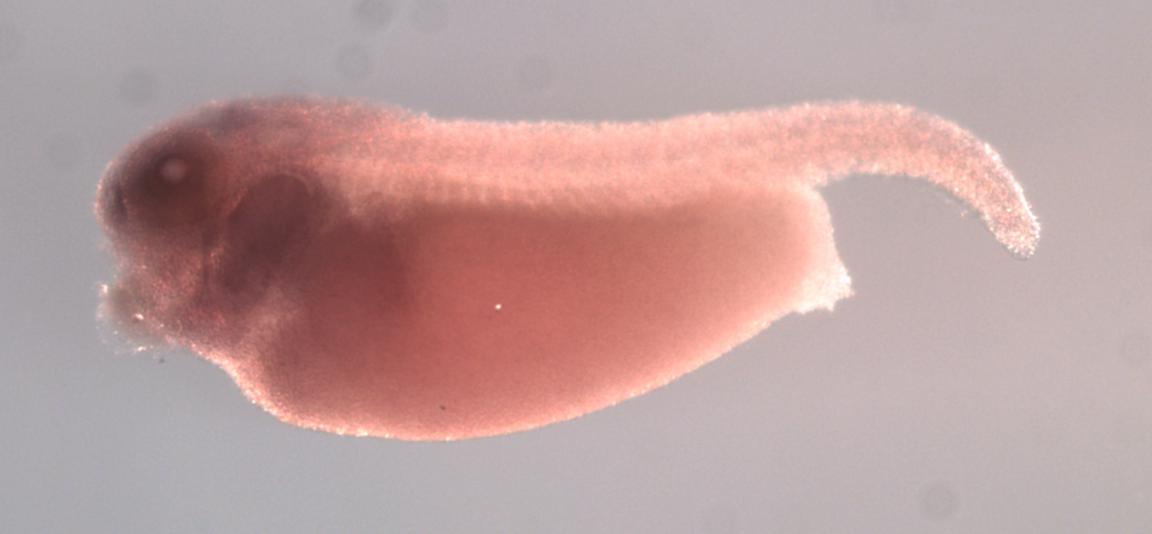 Larger Image ebpl (emopamil binding protein-like) gene expression in X. laevis embryo, assayed via in situ hybridization, NF stage 35/36, lateral view, anterior left, dorsal up. Copyright © Perron Lab