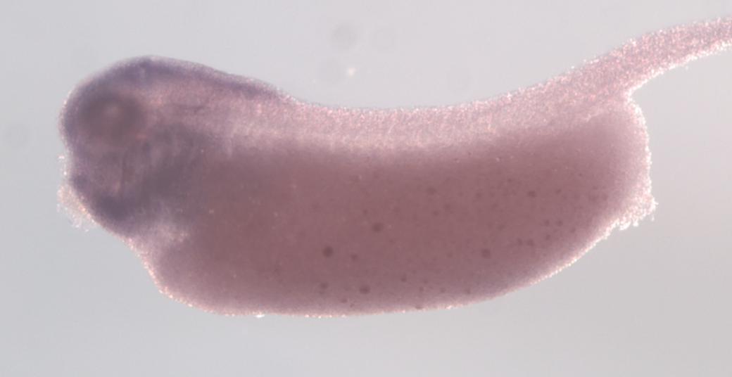 Larger Image pds5a (PDS5 cohesin associated factor A) gene expression in X. laevis embryo, assayed via in situ hybridization, NF stage 35 & 36, lateral view, anterior left, dorsal up. Copyright © Perron Lab