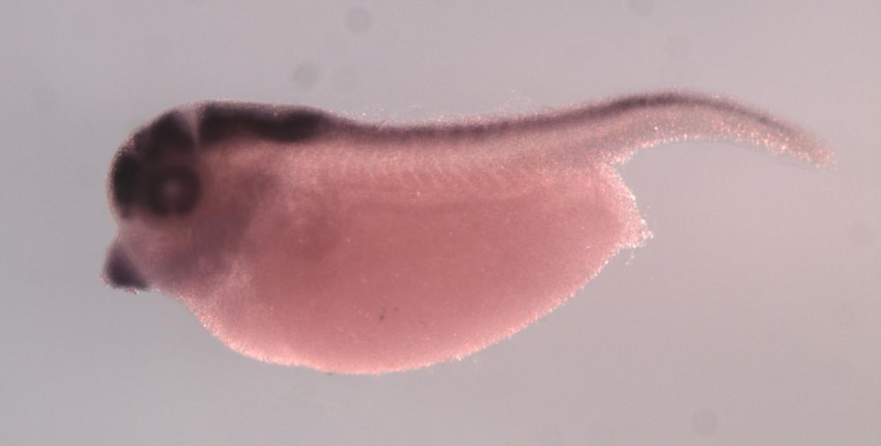 Larger Image gabrb1 (gamma-aminobutyric acid (GABA) A receptor, beta 1) gene expression in X. laevis embryo, assayed via in situ hybridization, NF stage 35 & 36, lateral view, anterior left, dorsal up. Copyright © Perron Lab