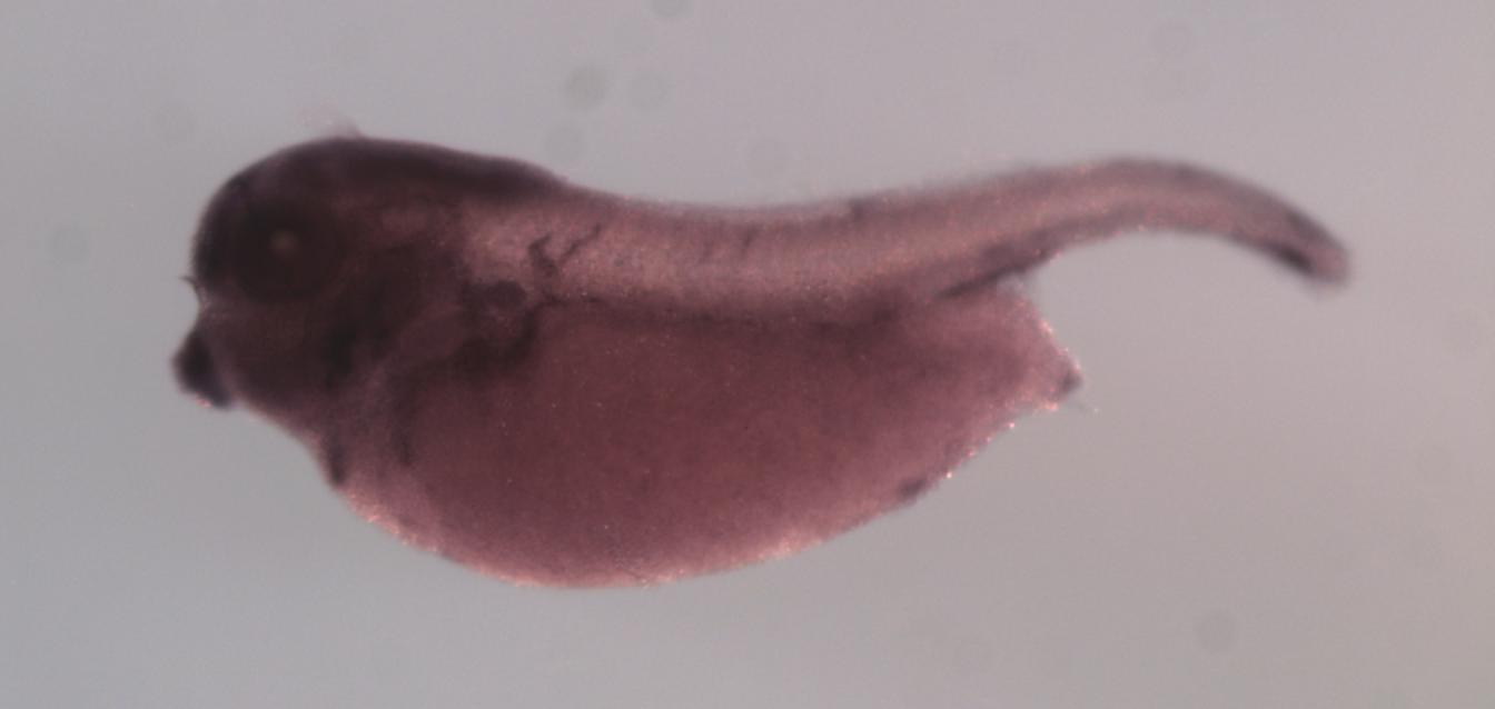 Larger Image napa (NSF attachment protein alpha) gene expression in X. laevis embryo, assayed via in situ hybridization, NF stage 35 & 36, lateral view, anterior left, dorsal up. Copyright © Perron Lab