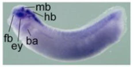 Larger Image akt1 (AKT serine/threonine kinase 1 ) gene expression in Xenopus laevis embryo, assayed via in situ hybridization, NF stage 28, lateral view, anterior left, dorsal up. This image is extracted from figure published in: Zhang Z et al. (2017) Copyright © 2017. Image reproduced with permission of the Publisher and the copyright holder. This is an Open Access article distributed under the terms of the Creative Commons Attribution License.