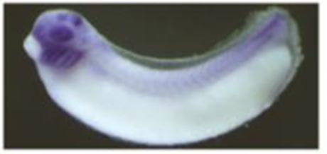 Larger Image prmt5 (protein arginine methyltransferase 5) gene expression in Xenopus laevis embryo, assayed via in situ hybridization, NF stage 26-32, lateral view, anterior left, dorsal up. This image is extracted from figure published in: Zhang Z et al. (2017) Copyright © 2017. Image reproduced with permission of the Publisher and the copyright holder. This is an Open Access article distributed under the terms of the Creative Commons Attribution License.