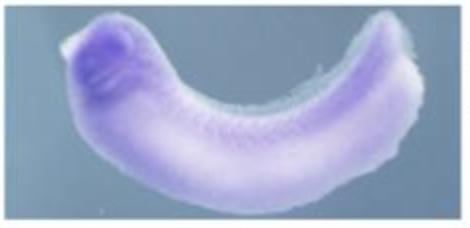 Larger Image Cdkn2b (cyclin-dependent kinase inhibitor 2B) gene expression in Xenopus laevis embryo, assayed via in situ hybridization, NF stage 26-32, lateral view, anterior left, dorsal up. This image is extracted from figure published in: Zhang Z et al. (2017) Copyright © 2017. Image reproduced with permission of the Publisher and the copyright holder. This is an Open Access article distributed under the terms of the Creative Commons Attribution License.