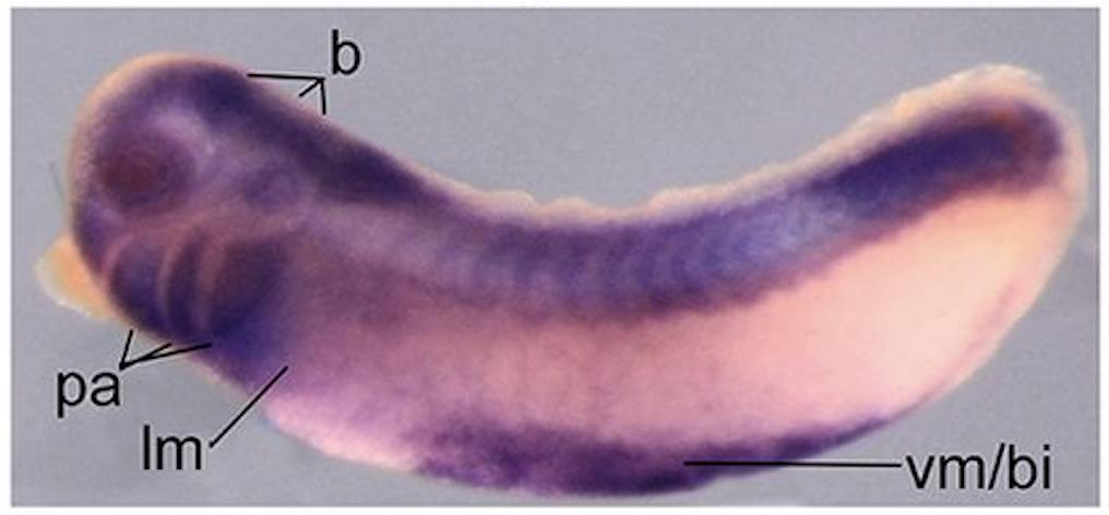 Larger Image rpsa (ribosomal protein SA) gene expression in Xenopus laevis embryo, assayed via in situ hybridization, NF stage 28, laterall view, anterior left. This image is extracted from figure published in: Griffin JN et al. (2018), Image published in: Griffin JN et al. (2018) Copyright © 2018. Image reproduced with permission of the Publisher and the copyright holder. This is an Open Access article distributed under the terms of the Creative Commons Attribution License.