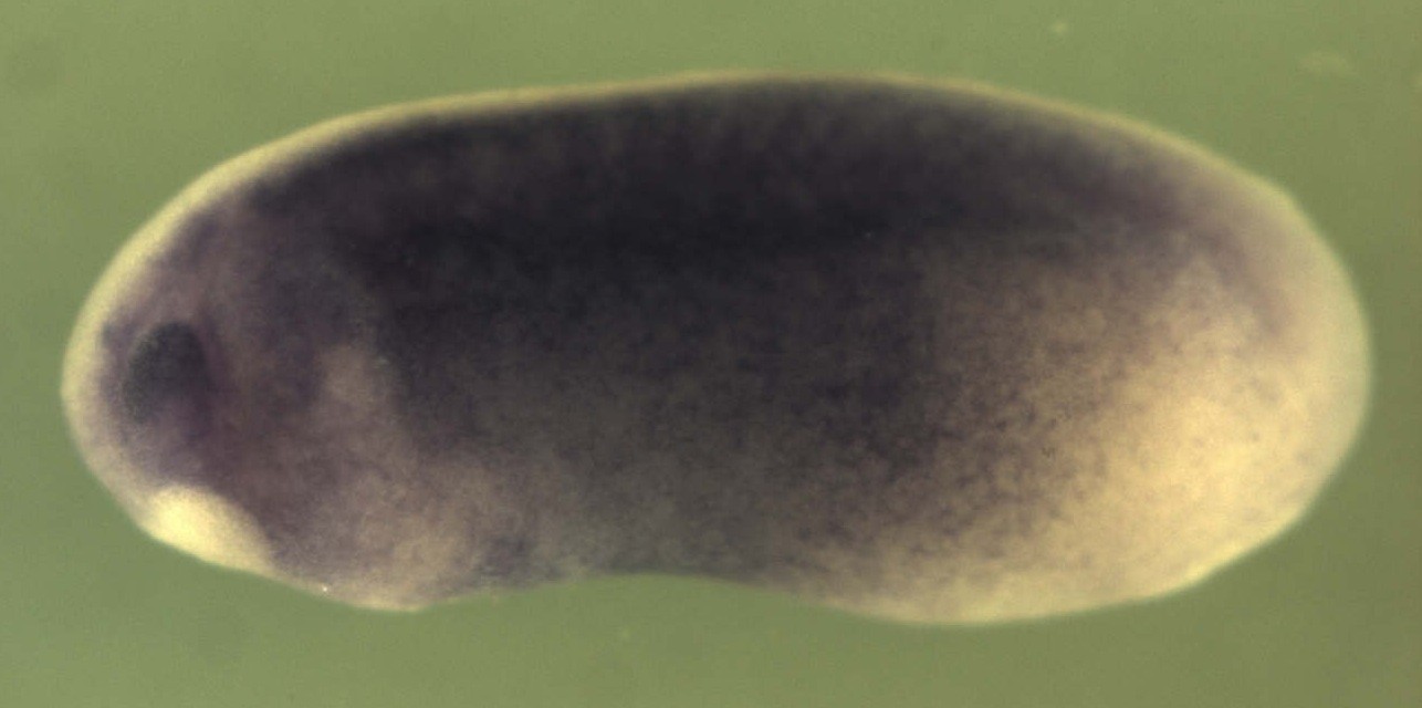 Larger Image etvl3 (ETS variant transcription factor 3 like) gene expression in Xenopus laevis embryo, assayed via in situ hybridization, NF stage 25/26, lateral view, anterior left, dorsal up. Copyright © Naoto Ueno