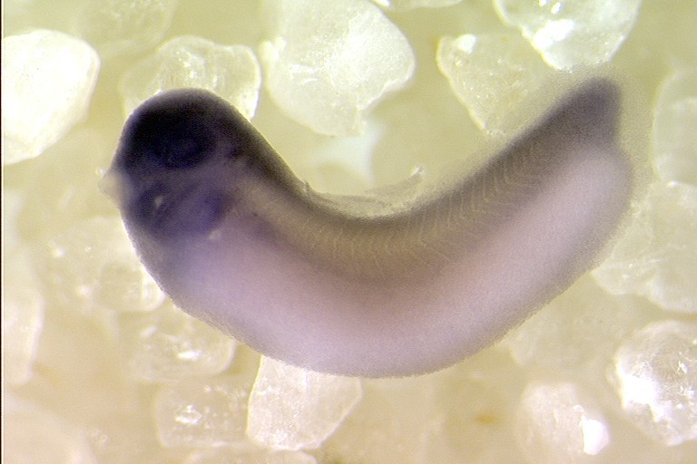 ogt gene expression in Xenopus laevis, NF stage 29&30 embryo, in situ hybridization, lateral view, anterior left.
