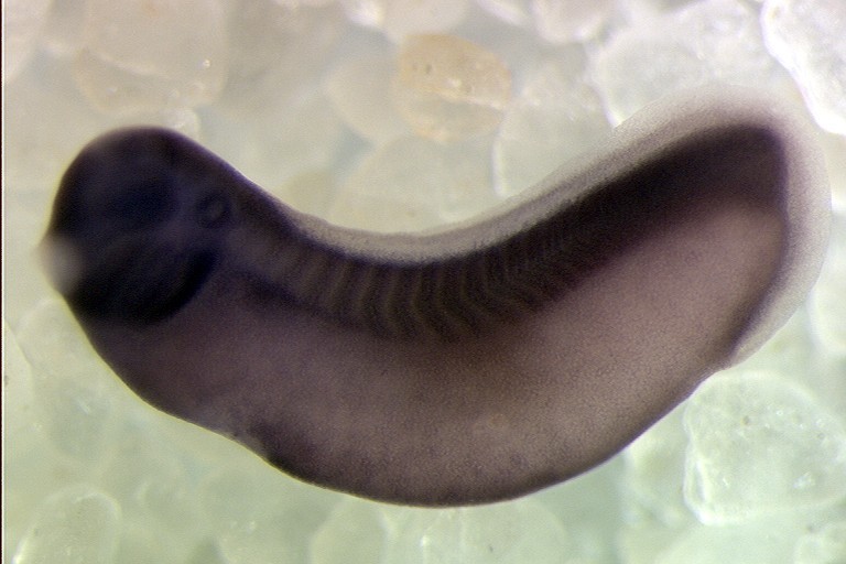 Larger Image dkc1 (dyskeratosis congenita 1, dyskerin) expressed in Xenopus laevis embryo via in situ hybridization, NF stage 29 and 30, lateral view, anterior left. Image copyrighted by © CNRS UMR 8080, Nicolas Pollet Copyright © CNRS UMR 8080, Nicolas Pollet Image published in: AXELDB Database, AxelDB (Image Pages)
