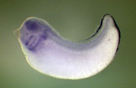 Larger Image fgf7 (fibroblast growth factor 7) expression in Xenopus tropicalis embryo, assayed via insitu hybridization, NF stage 35 & 36, lateral view, anterior left, dorsal up. This image is extracted from figure extracted from: Xenbase Image, This image is extracted from figure published in: Lea R et al. (2009), Image published in: Lea R et al. (2009) Copyright © 2009. Image reproduced with permission of the Publisher, John Wiley & Sons.