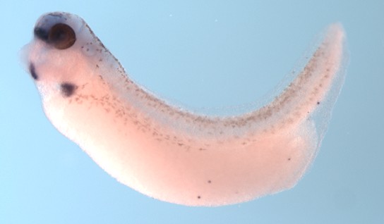 nkx2-1 (nkx2 homeobox 1) expressed in Xenopus laevis embryo via in situ hybridization, stage 36, lateral view, anterior left.
