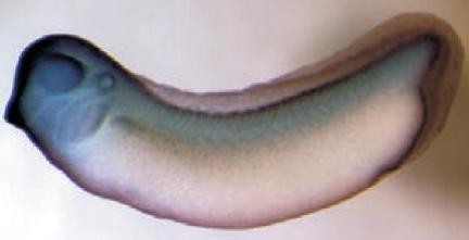 Larger Image hck (HCK proto-oncogene, Src family tyrosine kinase) gene expression in Xenopus laevis embryos, NF stage 28, as assayed by in situ hybridization, lateral view, anterior left, dorsal up. This image is extracted from figure published in: Ferjentsik Z et al. (2009), Image published in: Ferjentsik Z et al. (2009) Copyright © 2009. Image reproduced with permission of the Publisher, University of the Basque Country Press.