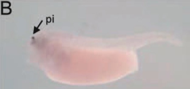Larger Image egr3 (early growth response 3) gene expression in Xenopus tropicalis embryos, NF stage 39, as assayed by in situ hybridization, lateral view, anterior left, dorsal up. This image is extracted from figure published in: Parain K et al. (2012), Image published in: Parain K et al. (2012) Copyright © 2012. Image reproduced with permission of the Publisher, John Wiley & Sons.