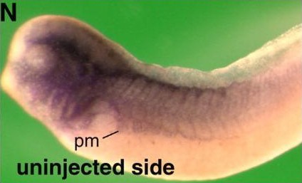 Larger Image vim (vimentin) gene expression in Xenopus laevis embryos, NF stage 34, as assayed by in situ hybridization. Lateral view: anterior left, dorsal up. Image extracted from XB-IMG-25099 Image published in: Hanel ML et al. (2009) Copyright © 2009. Image reproduced with permission of the Publisher, John Wiley & Sons.