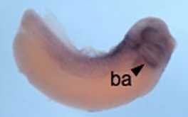 Larger Image sema3d (semaphorin 3D) gene expression in Xenopus laevis embryos, NF stage 28 - 32, as assayed by in situ hybridization, lateral view, anterior right, dorsal up. This image is extracted from figure published in: Koestner U et al. (2008), Image published in: Koestner U et al. (2008) Copyright © 2008. Image reproduced with permission of the Publisher, John Wiley & Sons.