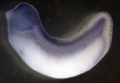 Larger Image ammecr1 (Alport syndrome, mental retardation, midface hypoplasia and elliptocytosis chromosomal region gene 1 ) gene expression in Xenopus laevis embryos, NF stage 29, as assayed by in situ hybridization, lateral view, dorsal up, anterior left. This image is extracted from figure published in: von Bubnoff A et al. (2005), Image published in: von Bubnoff A et al. (2005) Copyright © 2005. Image reproduced with permission of the Publisher, Elsevier B. V.