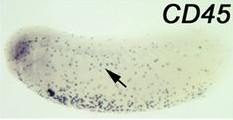Larger Image ptprc (protein tyrosine phosphatase, receptor type, C) gene expression in Xenopus laevis embryo, assayed via in situ hybridization, NF stage 26, lateral view, anterior left, dorsal up. This image is extracted from figure published in: Ciau-Uitz A et al. (2013), Image published in: Ciau-Uitz A et al. (2013) Copyright © 2013. Image reproduced with permission of the Publisher and the copyright holder. This is an Open Access article distributed under the terms of the Creative Commons Attribution License.