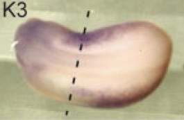 Larger Image cyp11a1 (cytochrome P450, family 11, subfamily A, polypeptide 1) gene expression in Xenopus laevis embryo, assayed via in situ hybridization, NF stage 22, dorsal view, anterior left. This image is extracted from figure published in: Arima K et al. (2005), Image published in: Arima K et al. (2005) Copyright © 2005. Image reproduced with permission of the Publisher, John Wiley & Sons.