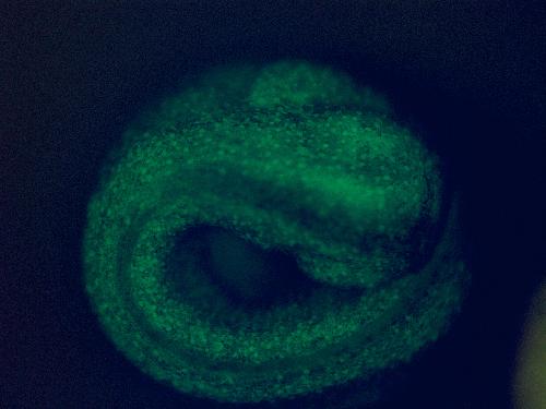 Fluorescence of the LURP1::EGFP line during late stages of larval development.