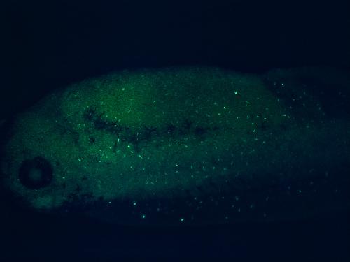 GFP expression in Xla.Tg(slurp1l:GFP)Mohun tadpole.