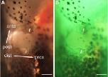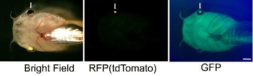 30 bp of promoter of the X. laevis hsp70 gene driving expression Dkk1GFP and 2.2 kb gamma crystallin promoter driving tdTomato. Dkk1 (labeled withGFP) specifically blocks Wnt/beta-catenin signaling and Dkk1GFP expression can be induced at a specific time-point by a heat-shock in this transgenic Xenopus. Thus, you can block Wnt/beta-catenin signaling temporally at desired time-point by a heat-shock. Transgenic X. laevis embryos were generated by a modified REMI technique using oocyte extract instead of egg extract. |