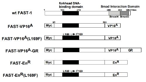 | Description: | This is a fusion construct consisting of the forkhead DNA-binding domain containing fragment (61-365aa) of the foxh1 protein and the VP16 activator domain. Also known as foxH1-VP16 and FAST-VP16. |